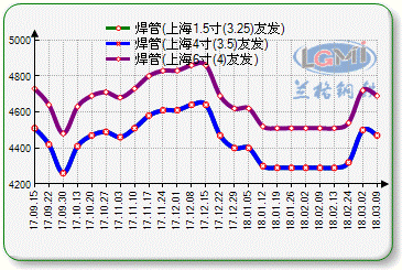 本周(3.5-3.9)上海市场焊管主流报价4寸主流累降30。兰格钢铁云商平台监测数据显示:截至3月9日,本地友发新国标产1.5寸(3.25mm)焊管主流报价4470元(吨价,下同),4寸(3.5mm)焊管主流报价4470元,6寸(4mm)焊管主流报价4690元。