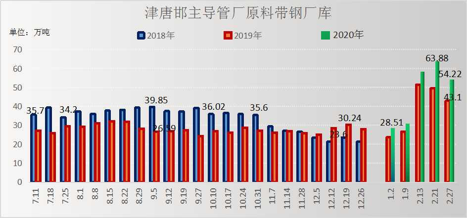 原料带钢:本周(2.27)厂内原料带钢库存54.22万吨,比上周同期减9.66万吨,下降17.82%;比去年农历同期增13.47万吨,增长33.06%;