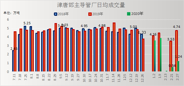日均成交量:本周(2.27)管厂日均成交量1.24万吨,比上周同期增0.7万吨,增长56.45%;比去年农历同期减3.69万吨,下降74.85%。