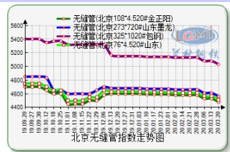 本周(3.23-3.27)北京地区无缝管价格据兰格钢铁云商平台监测数据显示,截至2020年3月27日,临沂108*4.5mm市价4450元,墨龙325*8市价4600元,包钢377*10市价4880元。