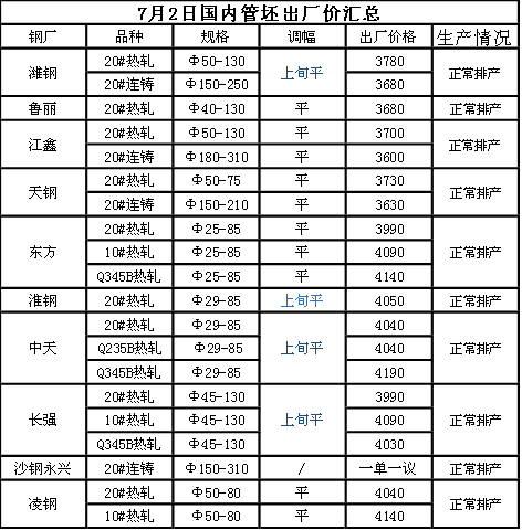 - 7月2日全国无缝管出厂汇总2020-7-2
