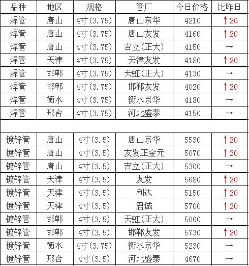 8月18日焊管、镀锌管主要管厂出厂价汇总(上调20)