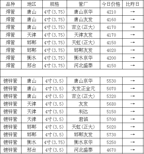 8月17日焊管、镀锌管主要管厂出厂价汇总(涨跌互现)