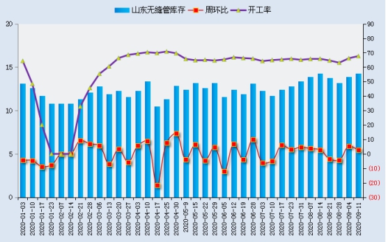 截至9月11日,山东地区125条(含9条连轧机组)开工率75.15%,较上周(9月4日)增长1.5个百分点。临沂地区65条生产线(含1条连轧机组)开工率67.69%,较上周增长1.54个百分点。总库存14.3万吨,较上周增加0.4万吨,周环比增长2.88%。