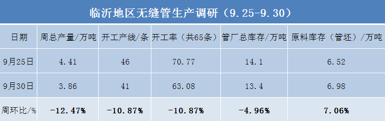 兰格调研:临沂地区无缝管厂、原料库存及开工率情况