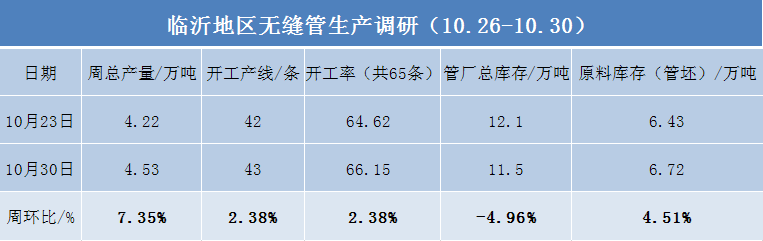 兰格调研:临沂地区无缝管厂、原料库存及开工率情况