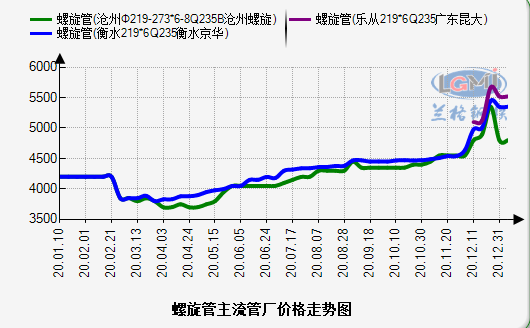 • 12月份螺旋管主要管厂出厂价汇总(上调250-520元)
