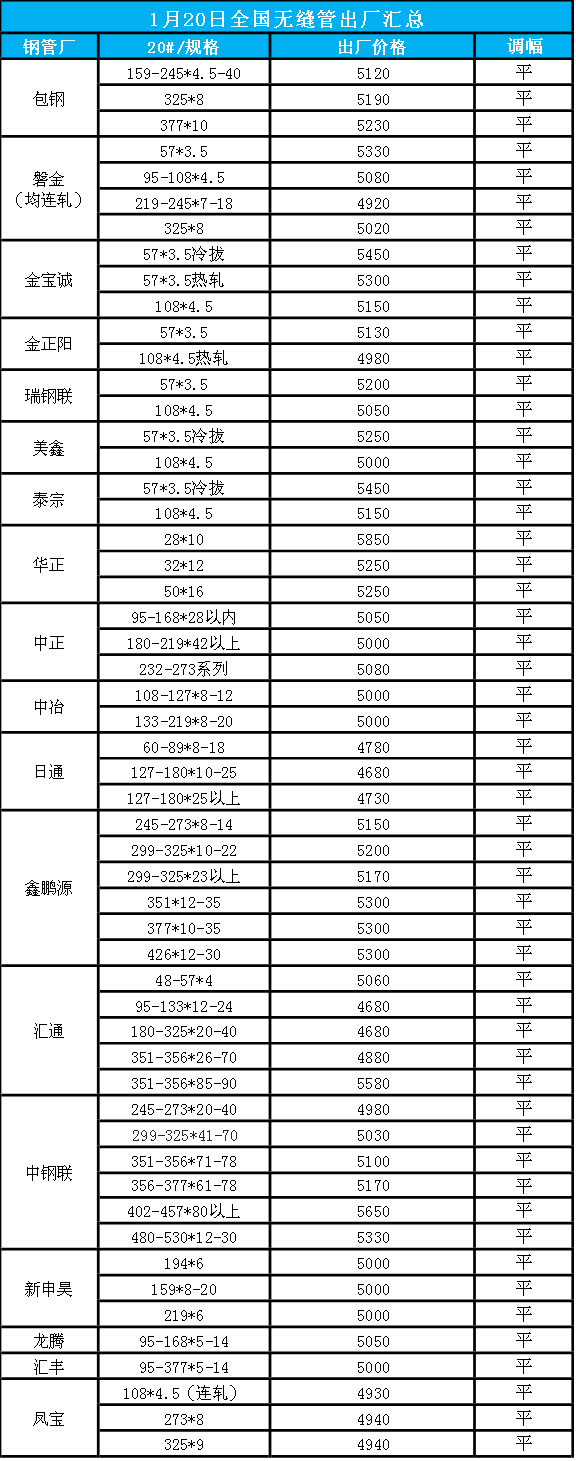 1月第2周全国无缝管出厂汇总(主稳个调)