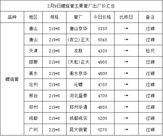 • 2月第一周螺旋管主要管厂出厂价汇总