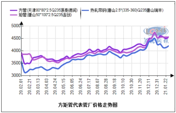 • 1月方矩管、镀锌方矩管主要管厂出厂价汇总