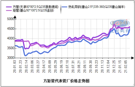 • 2月4日方矩管、镀锌方矩管主要管厂出厂价汇总