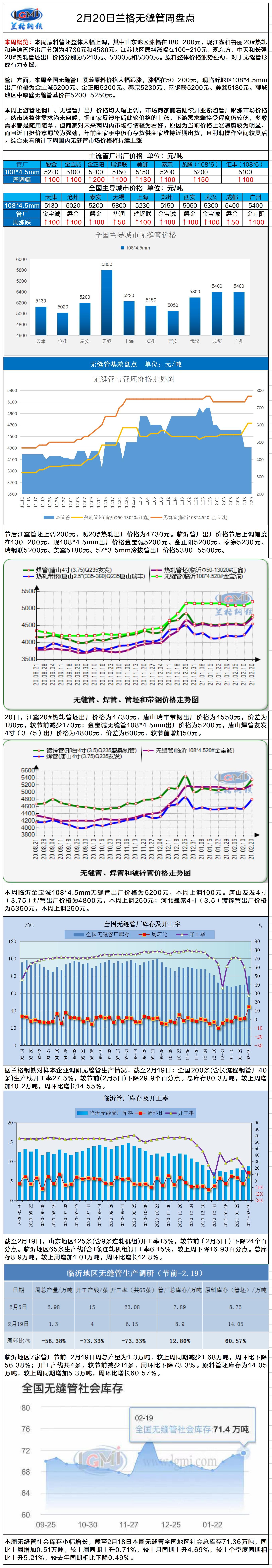 - 2月20日全国无缝管出厂汇总(整体上调50-200)2021/2/20