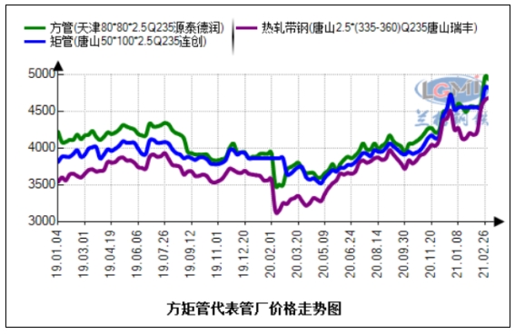 • 2月方矩管、镀锌方矩管主要管厂出厂价汇总