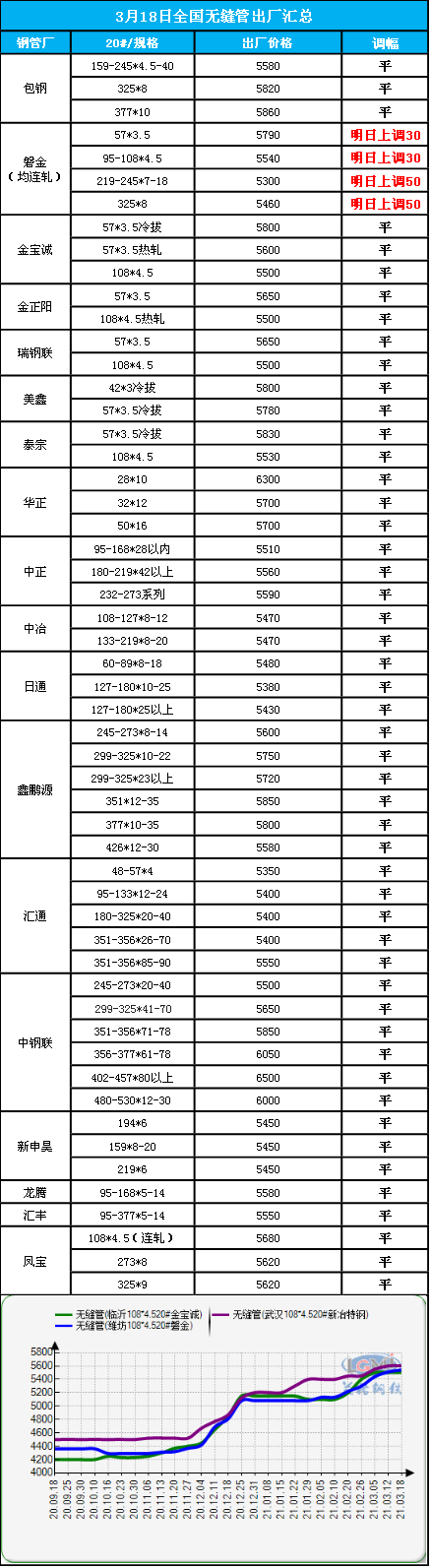 3月18日全国无缝管出厂汇总(磐金明日上调30-50)