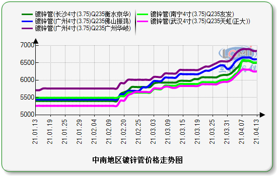 本周中南地区镀锌管市场呈小幅上涨态势。