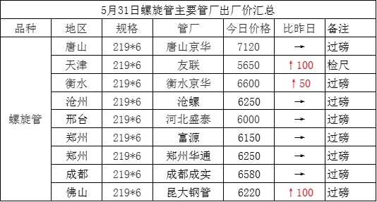 • 5月第4周螺旋管主要管厂出厂价汇总