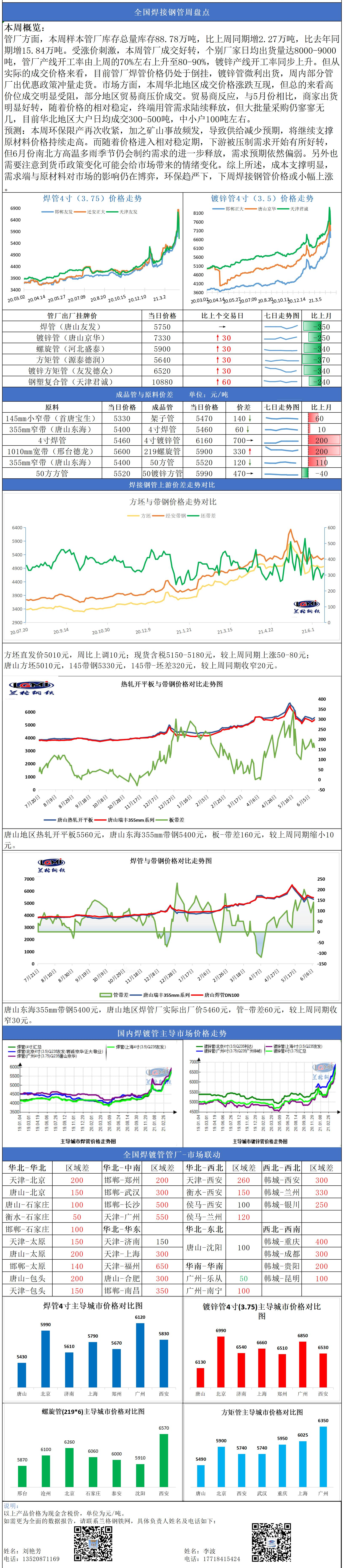- 国内重点城市焊管、镀锌管库存汇总(06.11)2021/6/11