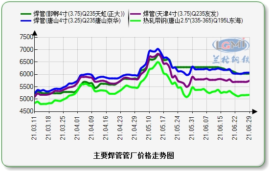 6月第4周焊管、镀锌管主要管厂出厂挂牌价汇总