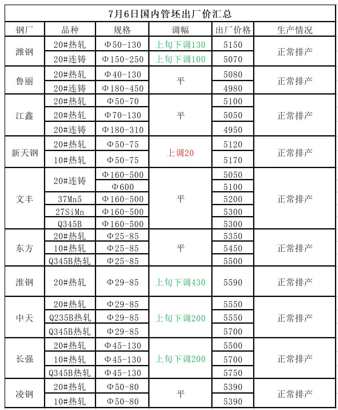 6月21日国内管坯出厂价汇总(部分下调50-100)