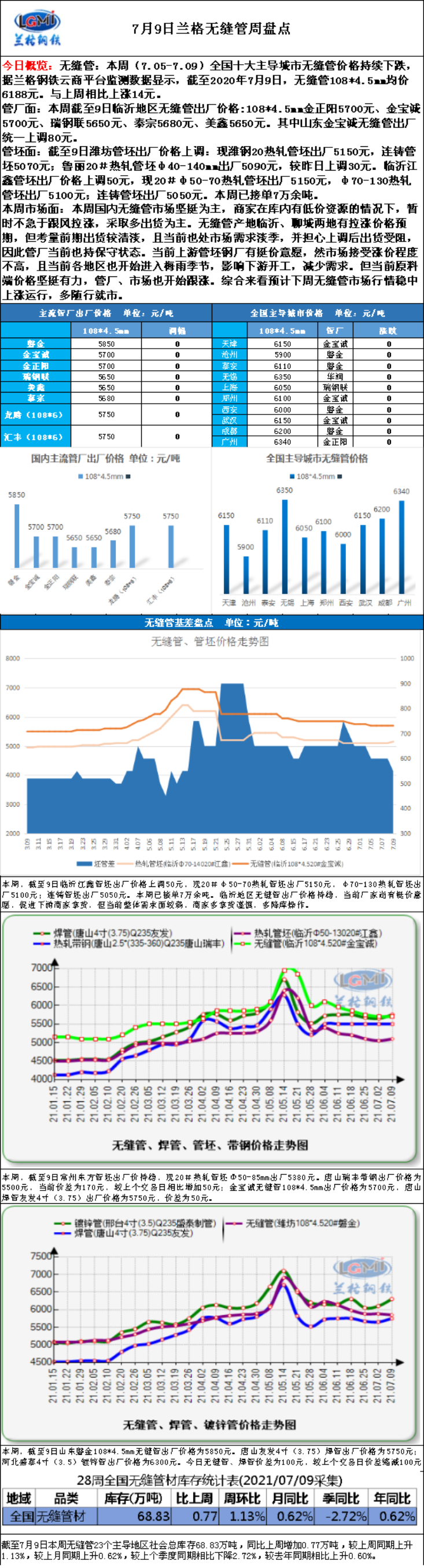 - 16日综述:本周无缝管市场价格稳中上涨 需求上游回升空间2021/7/16
