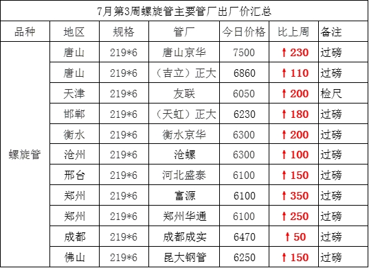 7月16日邯郸市正大制管有限公司出厂价上调30