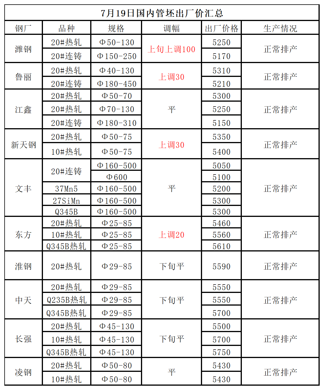 6月21日国内管坯出厂价汇总(部分下调50-100)
