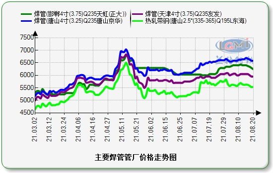• 8月第3周主要焊管管厂出厂挂牌价汇总