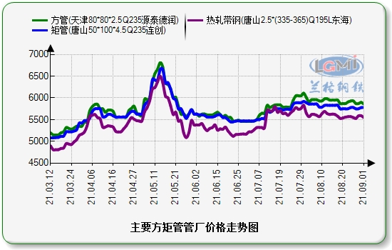 8月31日方矩管主要管厂出厂挂牌价汇总