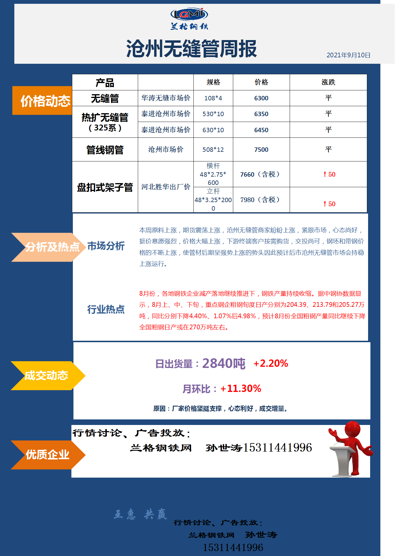 - 本周沧州无缝管市场价格持续拉涨 需求尚可2021/9/10