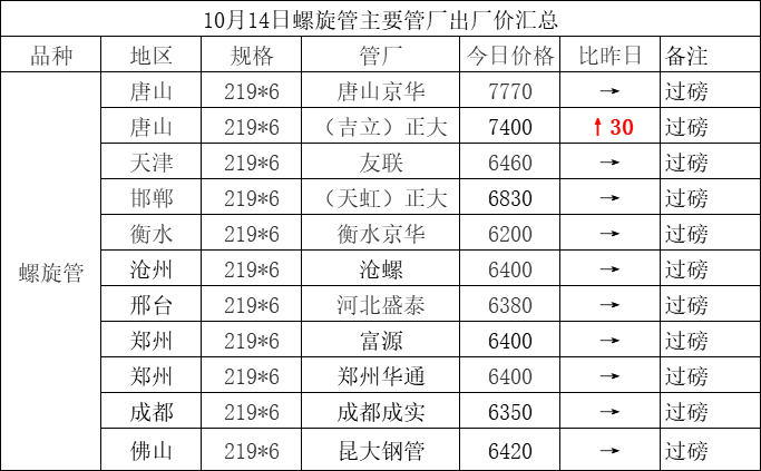 • 10月第1周螺旋管主要管厂出厂价汇总
