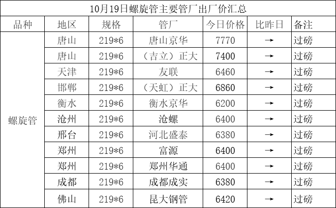 • 10月第1周螺旋管主要管厂出厂价汇总