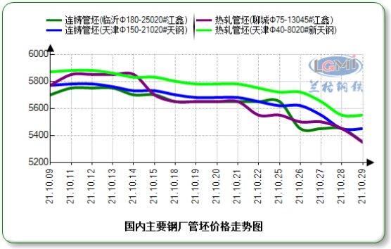 上游管坯:本周主导钢厂江鑫、新天钢、文丰、汇鑫管坯出厂价格分别下调300元、200元、250元、200元,其中20#热轧管坯出厂分别5450-5500元、5550元,后两家20#连轧管坯分别出厂5400元、5400元。