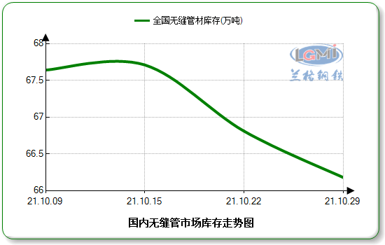 市场库存:本周全国无缝管市场库存66.18万吨,较上周下降0.63万吨,周环比下降0.95%。