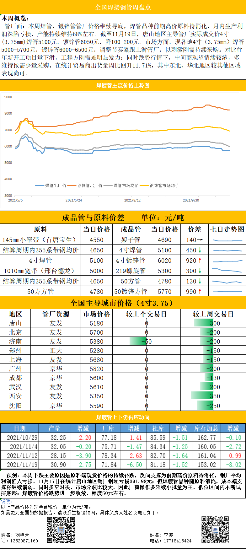 - 11月第3周焊管、镀锌管主要管厂出厂挂牌价汇总2021/11/19