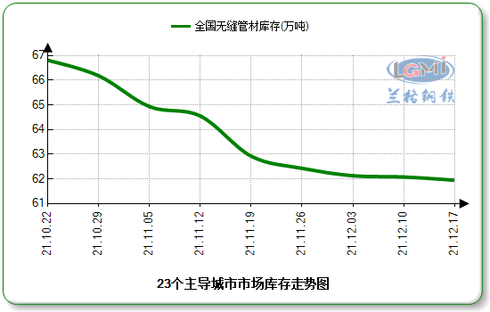 据兰格钢铁云商数据监测显示,23个主导城市无缝管市场库存降至61.95万吨,周环比下降0.21%,自无缝管价格大幅下调以来,无缝管市场库存大幅下降,截至本月才有所放缓,主流贸易商已将库存降至最低以保利。