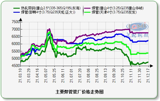 12月第3周焊管、镀锌管主要管厂出厂挂牌价汇总