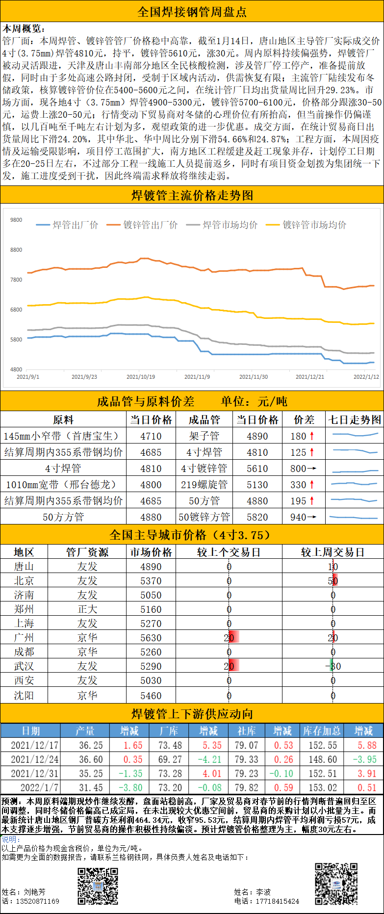 - 1月第2周焊管、镀锌管主要管厂出厂价汇总2022/1/14