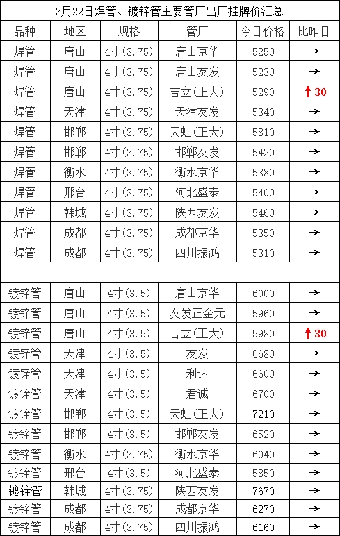 • 3月20日天津友发钢管集团股份有限公司第一分公司出厂价上调30