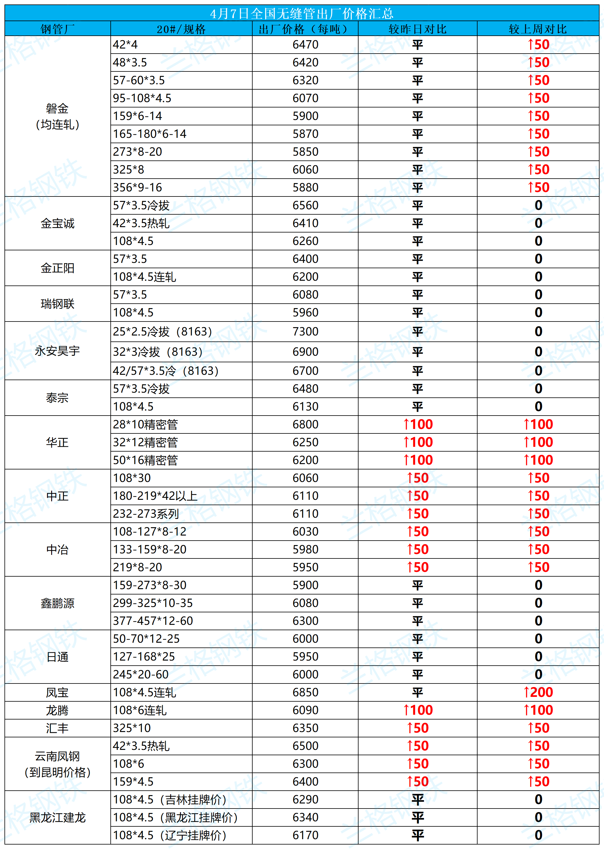 4月7日全国无缝管出厂价格汇总