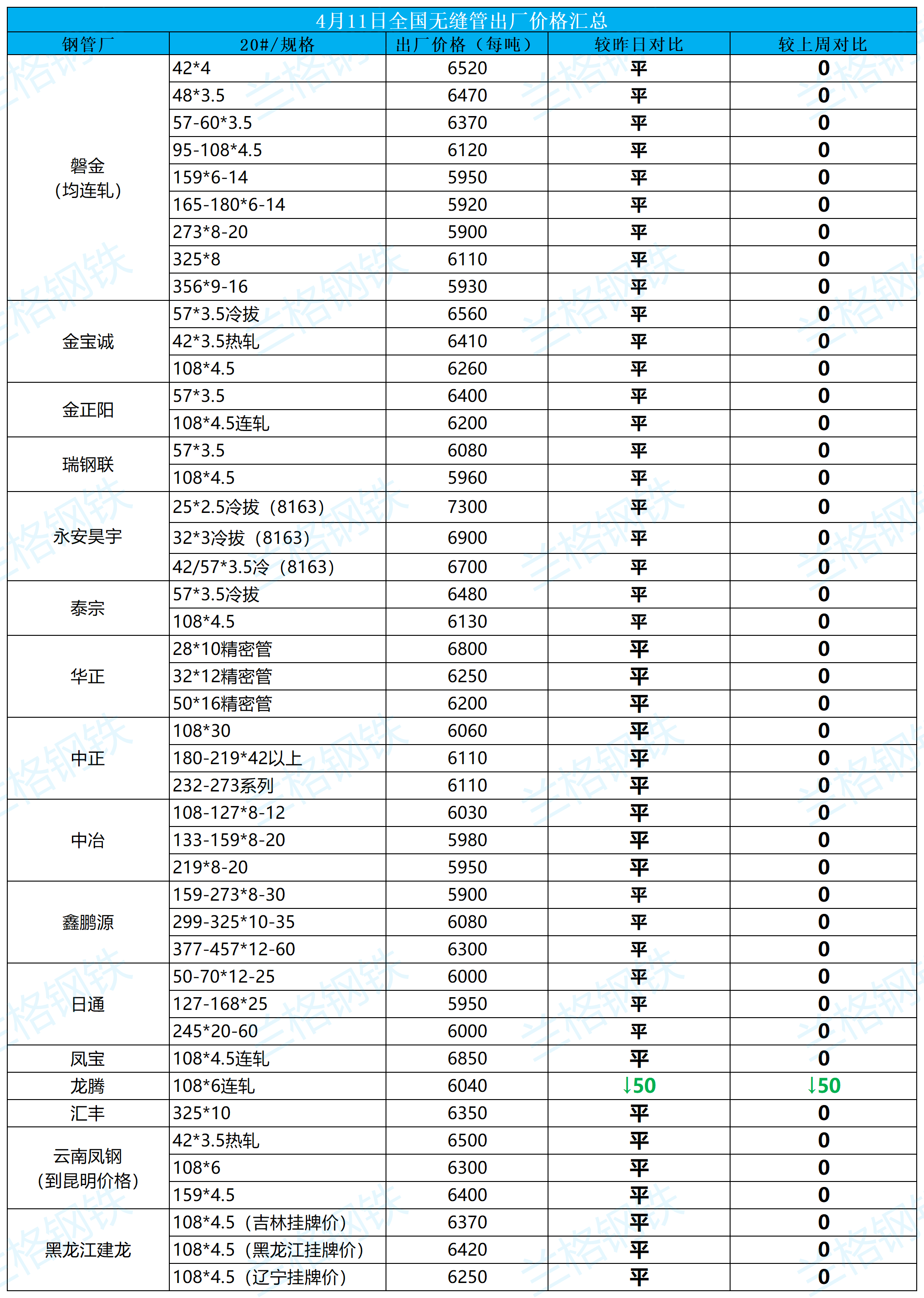 4月11日全国无缝管出厂价格汇总