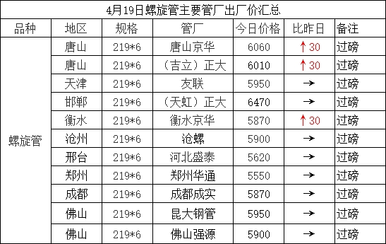 4月第2周主要螺旋管主要管厂出厂价汇总