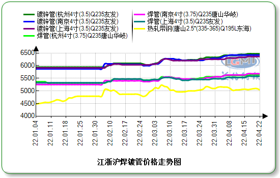4月江浙沪焊管、镀锌管价格盘整偏强,幅度30-50元(每吨,下同)。据兰格钢铁云商平台监测数据显示,江浙沪地区焊管4寸*3.75mm主流报价5500-5600元,镀锌管4寸*3.75mm主流报价6300-6400元;区域内南京、杭州、上海价差50元左右,镀锌管与天津市场价差走扩至250元。