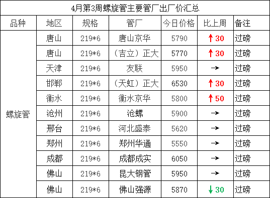 4月第2周主要螺旋管主要管厂出厂价汇总