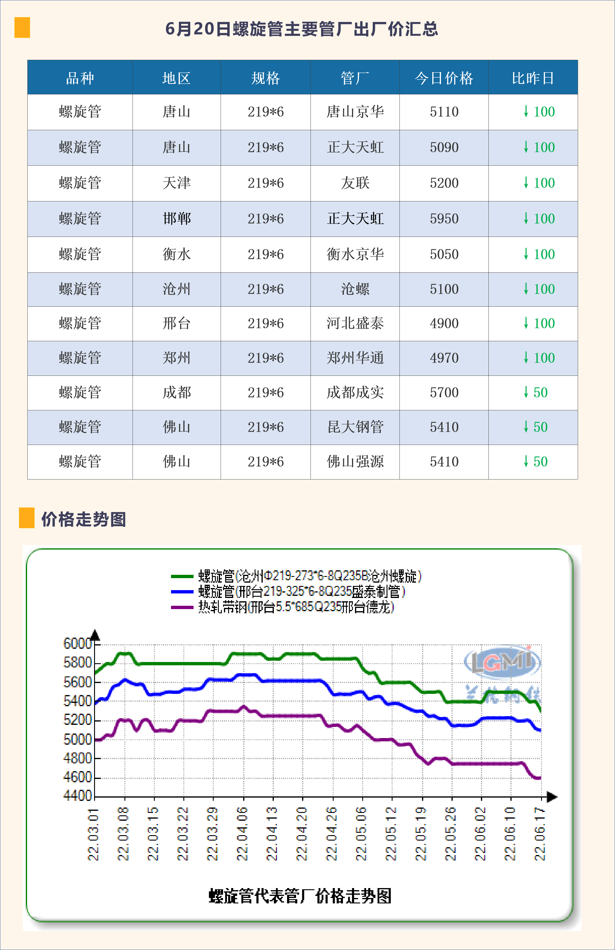 6月20日螺旋管主要管厂出厂价汇总