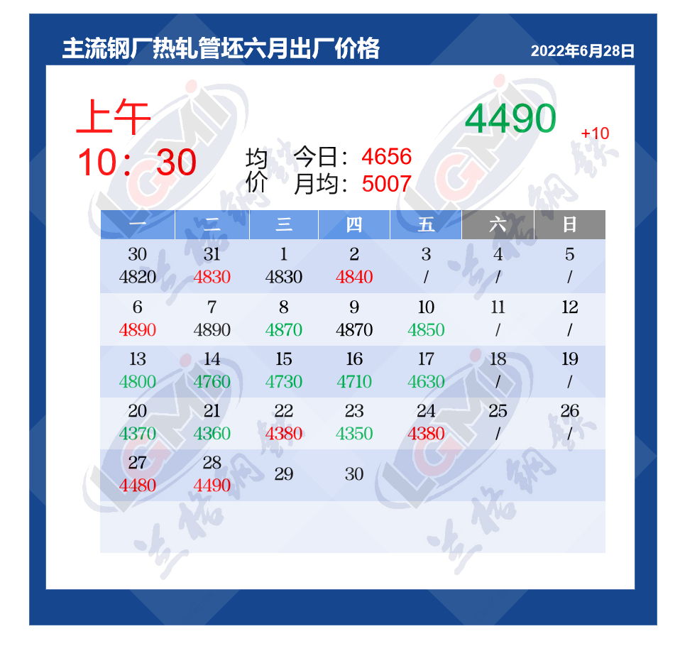 6月28日(11:30)国内管坯出厂价汇总