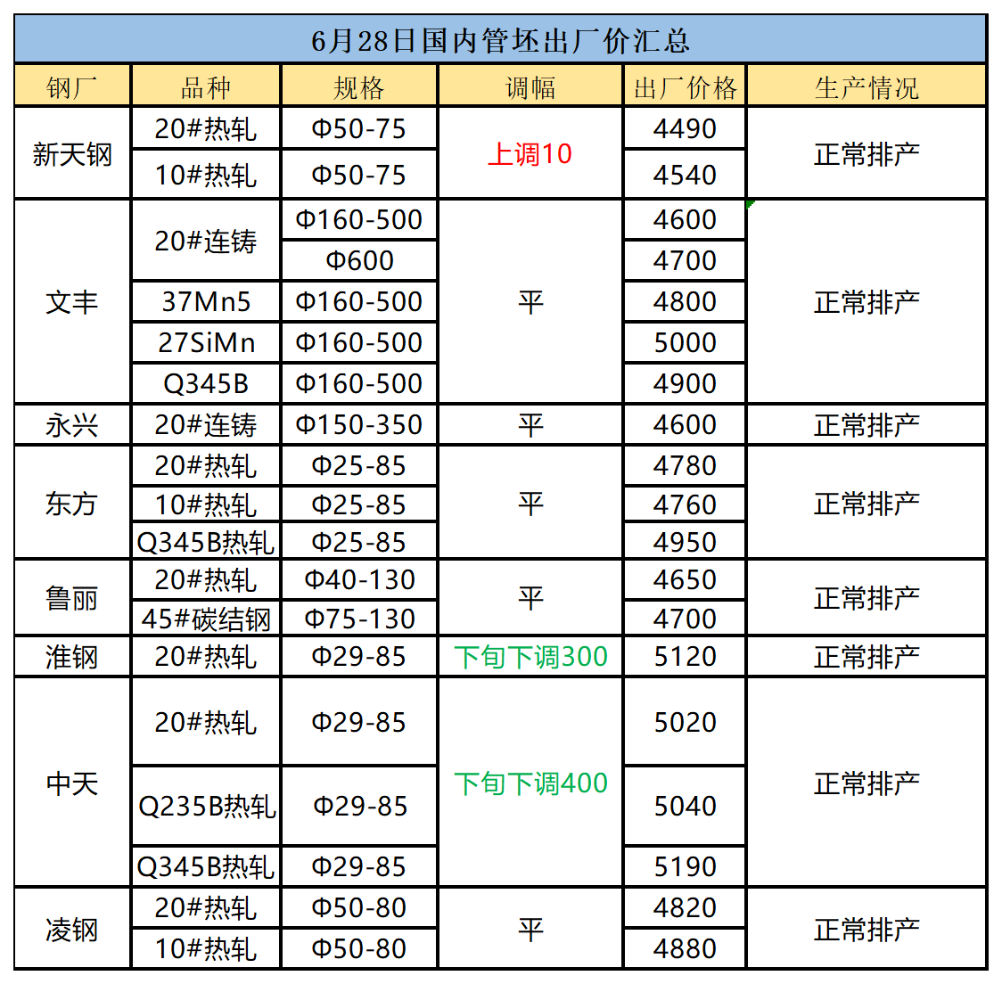 >管坯钢厂调价