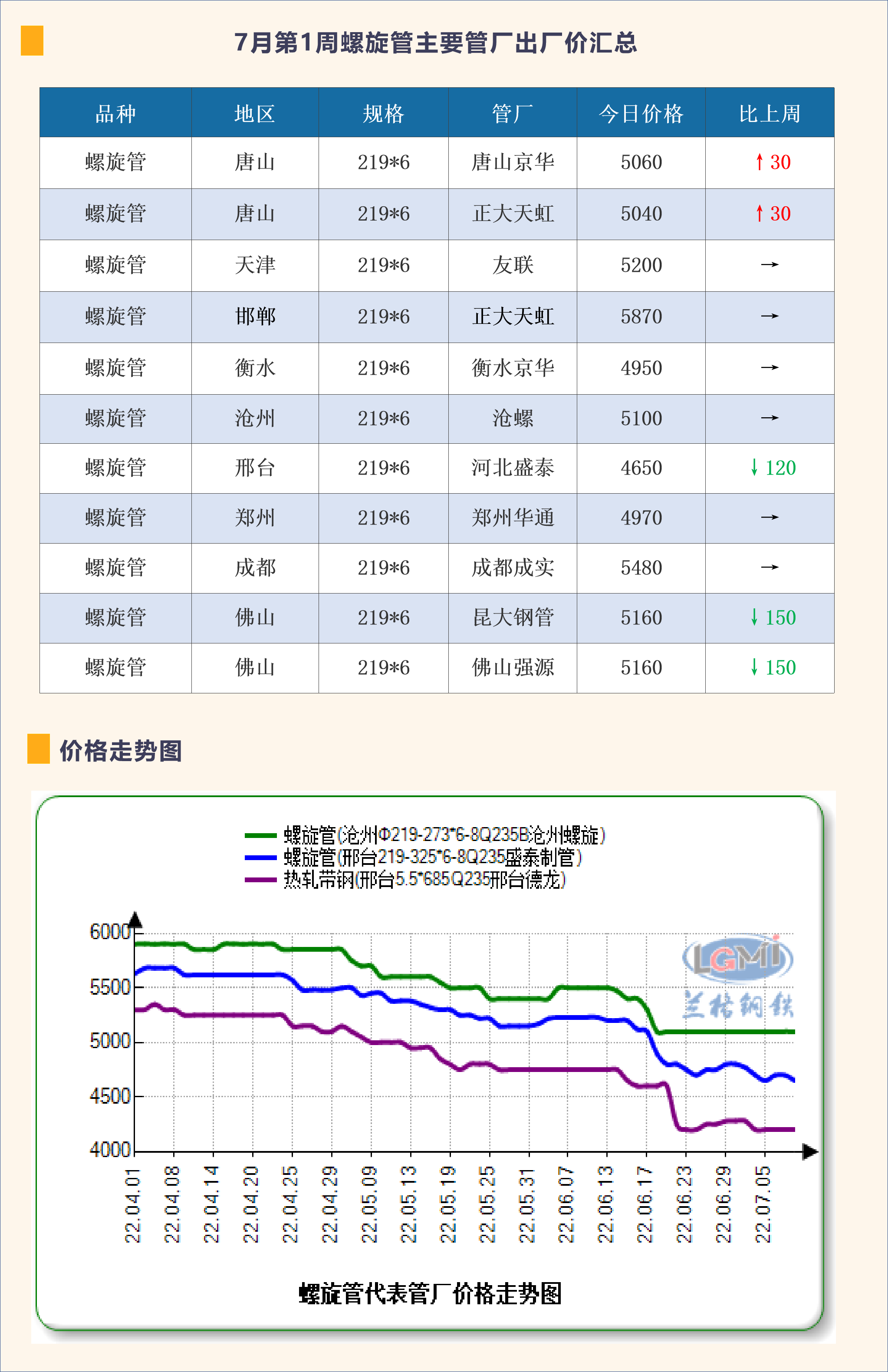 7月第1周螺旋管主要管厂出厂价汇总