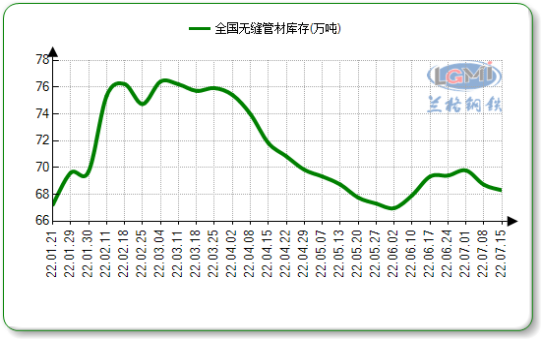 据兰格钢铁云上数据平台监测显示,截至15日国内23个城市无缝管社会库存总量68.31万吨,周环比降低0.6%,月同比降低1.49%。
