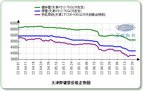 - 国内重点城市焊管、镀锌管库存汇总(07.22)2022/7/22