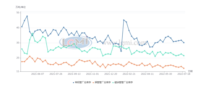 管厂方面,本周管厂出厂价格涨跌有限,幅度基本维持30-50元之间波动,原料带钢回涨150元以上但管厂提价动力不足,据了解,目前国内主流管厂开工率保持在60-70%,生产节奏不断放慢以减少库存压力,且价格政策灵活,以唐山为例,现唐山焊管4寸出厂价格4000元左右,镀锌管4寸出厂4700元左右。库存及成交方面,据统计,天津唐山邯郸主流管厂:截止7月21日,原料带钢库存30.17万吨,比上周同期降1.7万吨,比上月同期降0.68万吨,比去年同期降8.61万吨;焊管库存13.14万吨,比上周同期降1.21万吨,比上月同期降1.68万吨,比去年同期降2.47万吨;镀锌管库存21.51万吨,比上周同期降1.15万吨,比上月同期降0.83万吨,比去年同期降3.62万吨;日均成交量2.98万吨,比上周同期增0.52万吨,比上月同期增0.525万吨,比去年同期减1.19万吨。